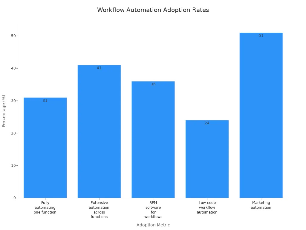 Businesses want to save time and do less boring work. That is why many companies use automation now. Look at this chart—over half of businesses use workflow automation in some way: