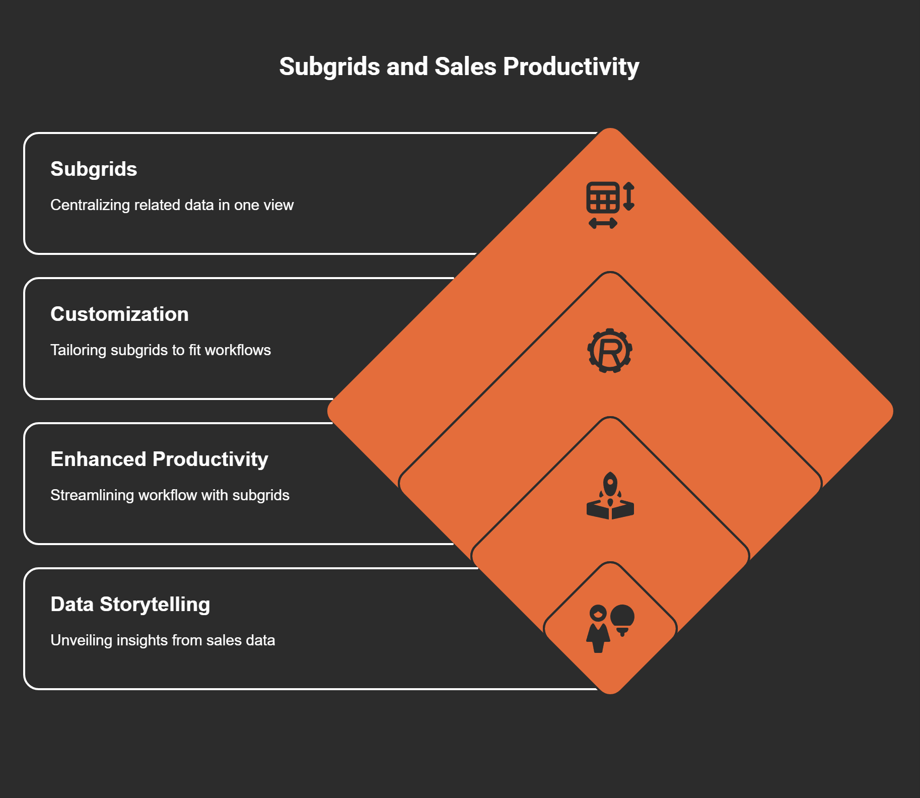 Subgrids let me see contacts, deals, and follow-ups without ever leaving my current form.
