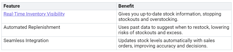 Automated inventory replenishment makes work easier. It cuts down on manual tasks and keeps stock levels just right.