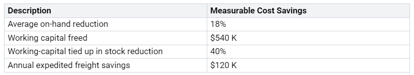 Using automated inventory replenishment can help you save a lot of money. Many businesses have noticed big savings after they started using automation. For example, companies have seen an average on-hand reduction of 18%. This means they freed up $540,000 in working capital. They also reduced the working capital tied up in stock by 40%. This saved them $120,000 each year on fast shipping costs.