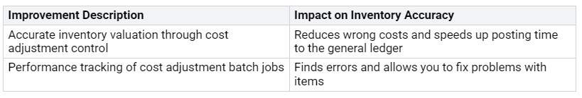 Inventory automation greatly improves accuracy in your work. With Business Central, you can get accurate inventory values through cost adjustment control. This helps reduce wrong costs and speeds up posting time to the general ledger. Tracking performance of cost adjustment batch jobs finds errors and allows you to fix problems with items.
