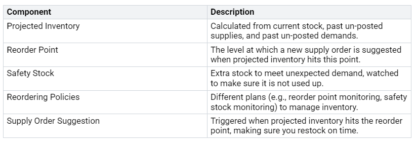 Reorder point calculation is another key feature in Business Central. This process helps you keep the right stock levels. It suggests new orders when your inventory hits a set limit. The system figures out reorder points based on expected demand during the item’s lead time. It checks for current supply orders and only suggests new ones when needed.