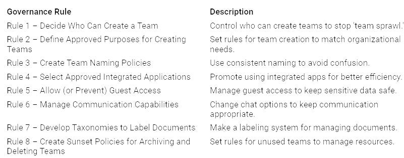 Setting rules is important for controlling team creation. Clear rules stop ‘team sprawl’ and help follow company policies.