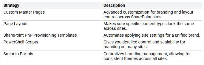 Also, think about these strategies to keep your templates consistent across many SharePoint sites: