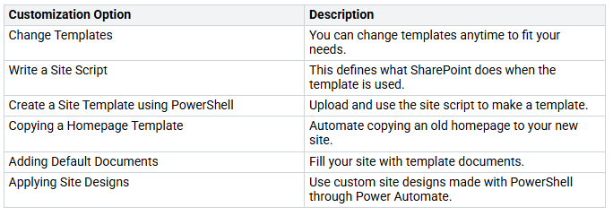 By using these customization options, you can create a new SharePoint site that matches your organization’s style and needs. This helps improve user experience and keeps things consistent across your SharePoint environment.