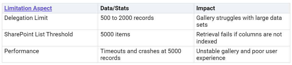 You probably started building your first powerapps gallery using gallery.selected. It feels easy at first, but you quickly notice some pain points. For example, when your gallery connects to a SharePoint list or pulls in thousands of records, things slow down or even break. Take a look at these common issues: