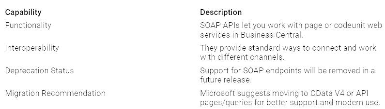 SOAP APIs let you work with page or codeunit web services in Microsoft Dynamics 365 Business Central. They provide standard ways to connect and work with different channels. Here are some key features of SOAP APIs: