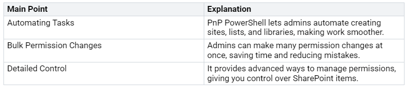 In conclusion, PnP PowerShell is an important tool for managing Microsoft 365. It helps you automate tasks, manage permissions, and make operations easier. Here are some main points: