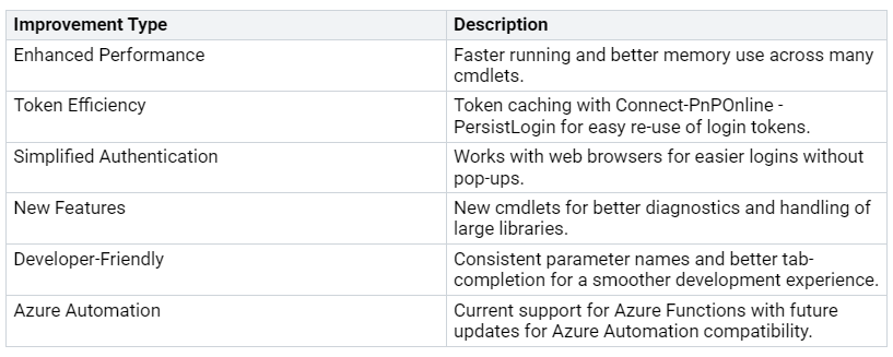 These updates make PnP PowerShell faster and easier to use. You will see quicker load times and smoother actions when managing your SharePoint sites.