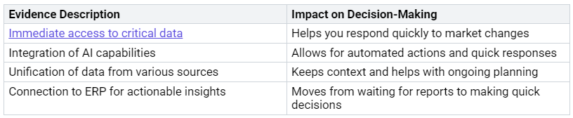 Real-time insights let you see important data right away. This helps you react quickly to changes in the market. With tools like Power BI, you can check key performance indicators (KPIs) instantly. This connection gives you a complete view of your business. You can look at sales trends, customer feedback, and spending all in one spot.