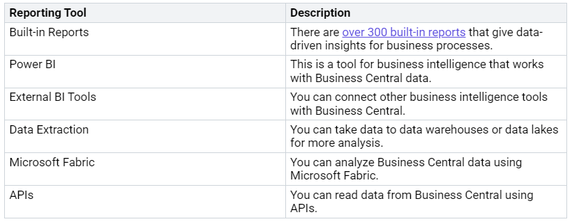 Microsoft Dynamics 365 Business Central has many reporting tools. These tools help you look at your data better. They help you make smart choices and improve your business. Here are some important reporting tools you can use: