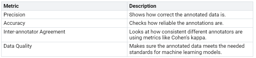 To check how well your data labeling framework works, think about these metrics:
