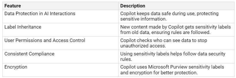 Microsoft 365 Copilot is very important for improving data protection and sensitivity labeling. This tool follows sensitivity labels. It keeps data safe during use. Here are some key features that show how it works: