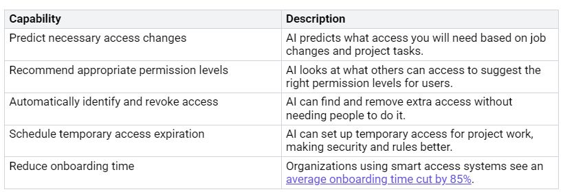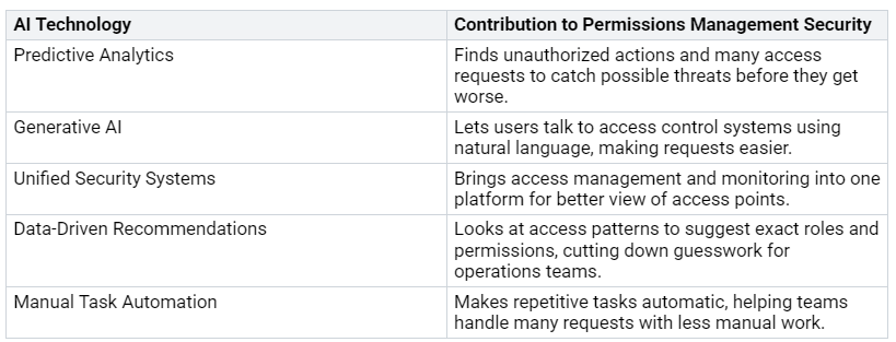 AI tools help manage permissions. They guess what access users need. They also automate tasks and give smart suggestions for better security.