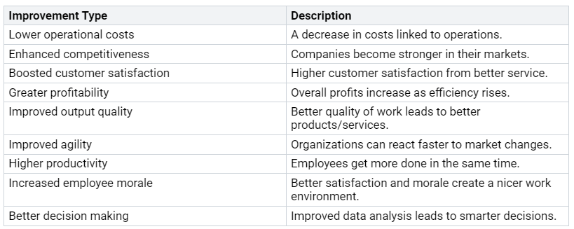 Error Reduction: Automating tasks like data entry keeps things consistent and accurate, reducing mistakes.