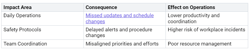 These problems can cause serious issues. For example, when communication fails, daily operations can be disrupted. You might miss key updates or schedule changes. This can lower productivity and teamwork.