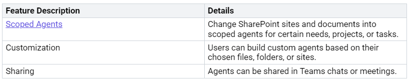 The features of SharePoint Copilot Agents make them helpful for any organization. Here are some important features:
