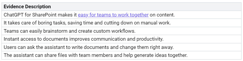 ChatGPT for SharePoint greatly boosts teamwork for remote groups. Here are some main benefits: