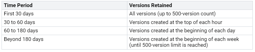 When using automatic versioning, SharePoint keeps versions based on a time plan: