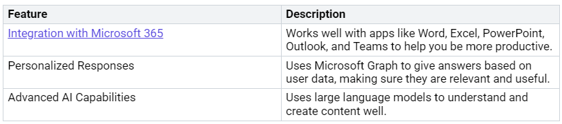 Microsoft 365 Copilot is special in the world of AI tools for businesses. It has some important features: