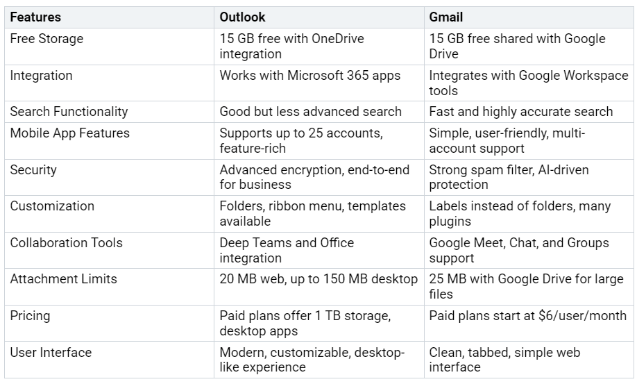 Gmail vs Outlook Comparing Features for Personal and Professional Use