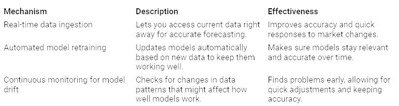With Microsoft Fabric, your forecasts can fix themselves. They change automatically when new transactions happen. Real-time data ingestion lets you see current information right away. This helps improve accuracy and quick responses to market changes. Automated model retraining keeps your forecasting models up to date. They change based on new data, so they work well over time. Continuous monitoring for model drift checks for changes in data patterns. This helps you find problems early, so you can make adjustments to keep accuracy.