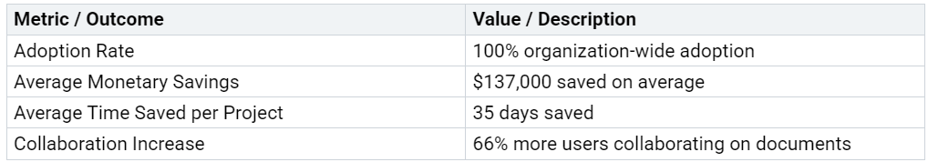 The M365 Maturity Model gives organizations a clear roadmap to align technology, people, and processes for greater organizational potential. Business and IT leaders see measurable results, such as 100% adoption of collaboration tools, certified professionals, and early business value. Many organizations report strong outcomes: