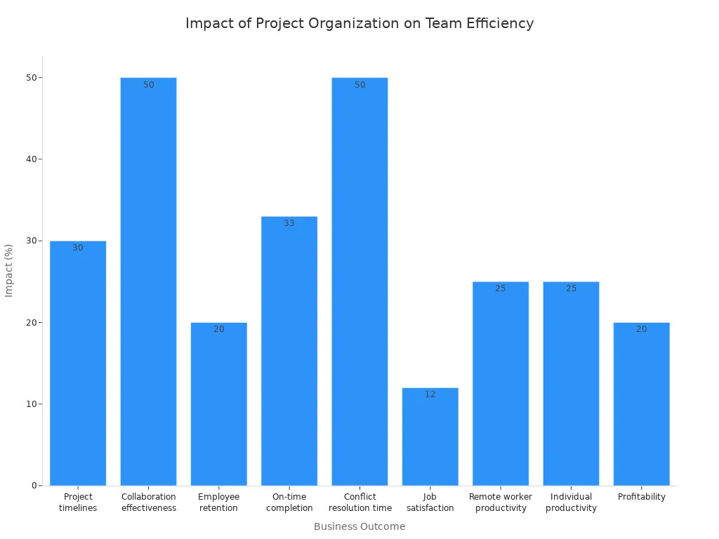 If you want your team to work better and faster, start by organizing projects to make them easy to follow. Make sure everyone talks openly. Using tools like Microsoft Teams helps everyone stay organized. Studies show teams with good structure and teamwork finish projects on time more often. They can also finish projects up to 30% faster.