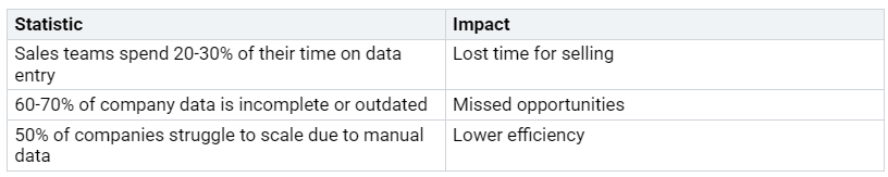 You want to win more deals, but doing lead work by hand is slow. Sales teams spend up to 30% of their time typing in data and looking things up. This means they have less time to talk to customers. Look at this table to see how doing things by hand hurts your results: