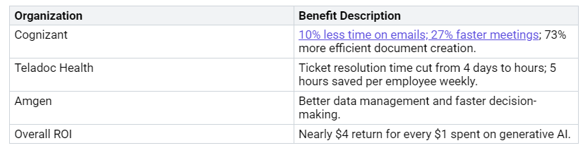 Meeting Time Reduction: Organizations have found that Copilot saves an average of 11 minutes each day for every user. This extra time helps you focus on important tasks, which improves project results.