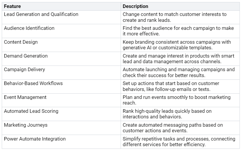 Automation features in Microsoft Dynamics 365 make your marketing workflows easier. These features cut down on manual work and make campaigns run better. Here are some important functions: