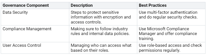 Clear rules are important for using Microsoft 365 well. They help everyone know their roles and what they should do. Here are key parts of a governance plan: