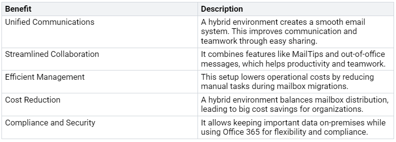 Using a hybrid exchange environment has many benefits for organizations. Here are some key advantages: