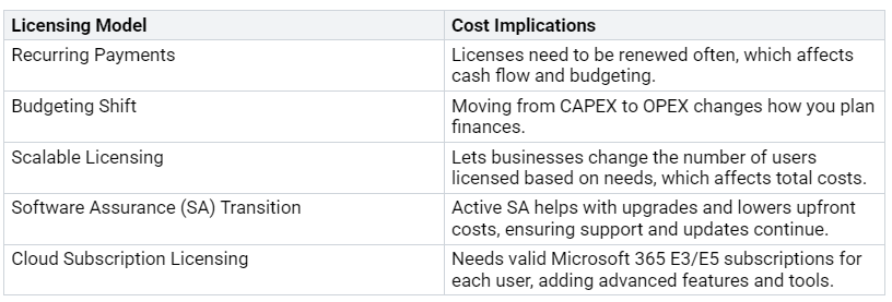Licensing is also very important for setting up a hybrid Exchange environment. You need to know about the different licensing types and their costs. The table below lists key licensing types: