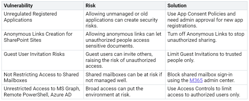 But, you also need to know about common permission-related problems in Microsoft 365 apps. Here’s a table that shows these problems, their risks, and solutions: