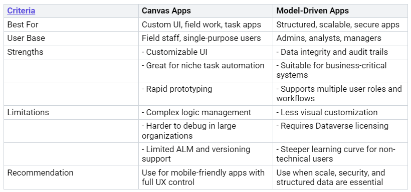 These tips can help you decide. If you want a very customizable app that focuses on user experience, Canvas Apps might be best. But if your organization needs a structured way to manage data, Model-Driven Apps are probably better.