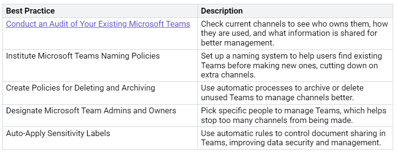 Implement Governance Policies: Set clear rules for creating and managing teams. This makes things easier for users and keeps information safe.