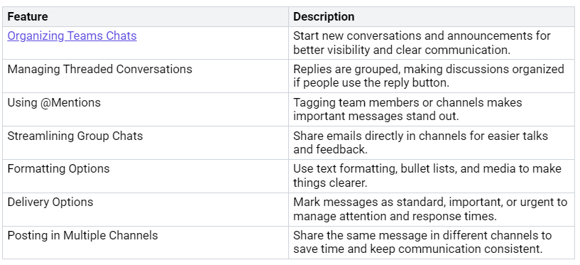 Microsoft Teams has many chat features that can really help your team talk better. Here’s a quick look at some of the best features: