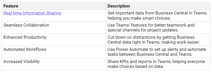 Business Central works with Microsoft Teams, giving you features that help teamwork. Here are some important benefits: