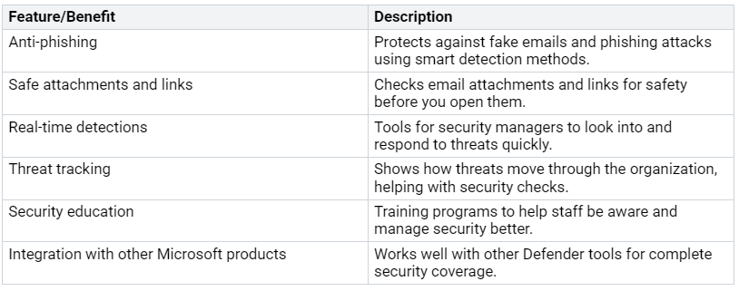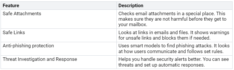 In short, Microsoft Defender for Office 365 gives strong protection for your email and teamwork tools. You get important features that make your security better, like: