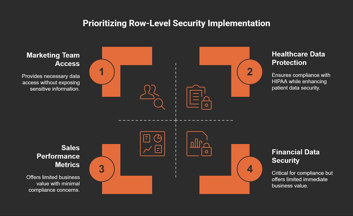 Implementing RLS is not just about preventing unauthorized access; it also offers significant business value. By ensuring that users only see relevant data, organizations can: