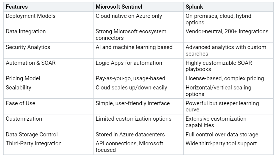 Explore differences between Microsoft Sentinel and Splunk security platforms.