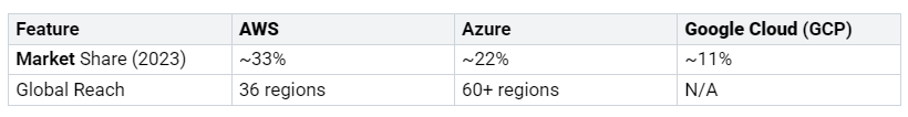 Amazon Web Services (AWS) started in 2006. It is the oldest cloud platform. It is used the most. It has the biggest market share. It serves millions worldwide. Microsoft Azure started in 2010. It quickly became popular. This was true for companies using Microsoft products. It works well with Windows Server and Office 365. Google Cloud Platform (GCP) started in 2008. It is known for data tools. It is also known for machine learning and AI. It grows steadily. This is among companies that use a lot of data. It is behind AWS and Azure in market share.