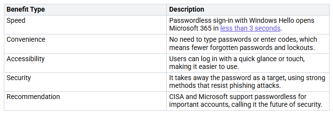 Passwordless sign-in is a big change for Microsoft 365 users. It makes security better and helps users. Here are some important benefits of using passwordless sign-in: