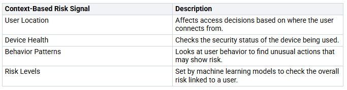 By using context-based risk signals, you can build a safer environment that follows Zero Trust ideas.