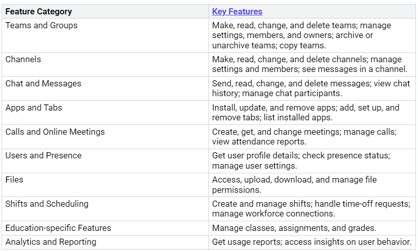 Microsoft Teams APIs help teams work better together. They have tools for chatting, meetings, and sharing files. This is perfect for working inside a company.