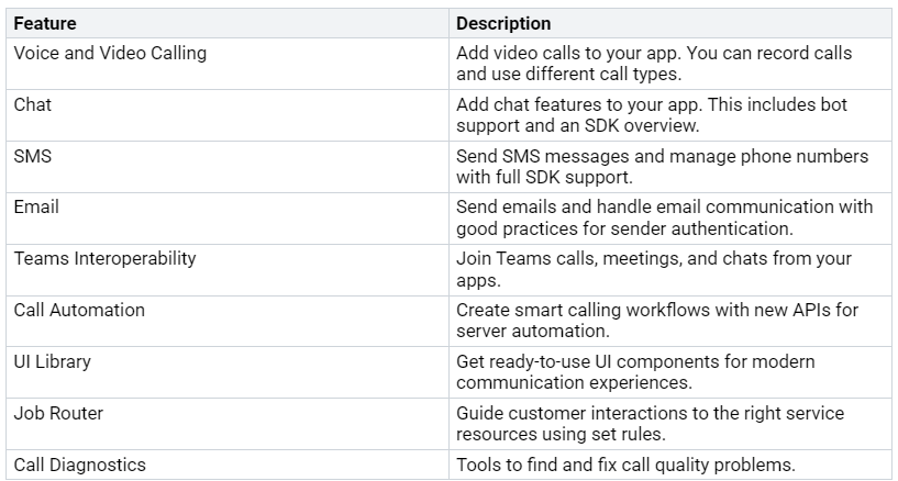 Azure Communication Services (ACS) is a strong platform. It helps you add communication features to your apps. With many features, you can improve user engagement and make interactions easier. Here are some important features that make ACS a great choice for developers: