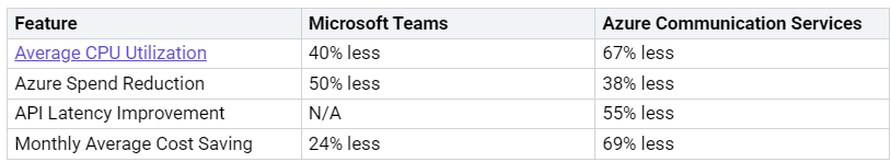 This table shows that ACS has costs for sending messages and joining meetings, but Teams APIs do not charge for these actions. This difference can really change your total costs, especially if your organization uses messaging and meetings a lot.