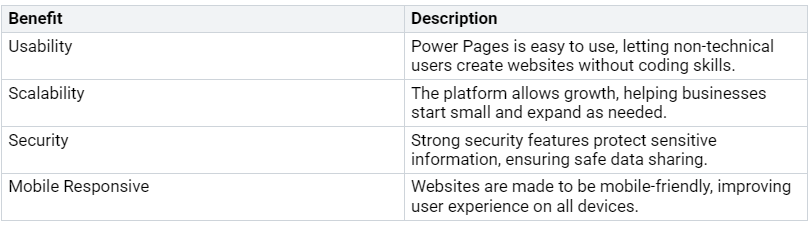 In short, using Power Pages for no-code web development gives you many important benefits. You can make easy-to-use websites without knowing how to code. The platform can grow with you, so you can start small and expand as your needs change. Security features keep your information safe, and your websites will look good on any device.