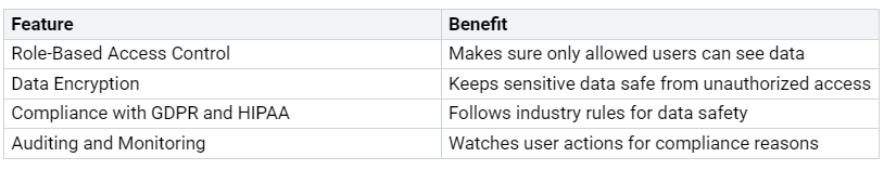 Role-Based Access Control: This feature sets access levels for users based on their roles, making things safer.